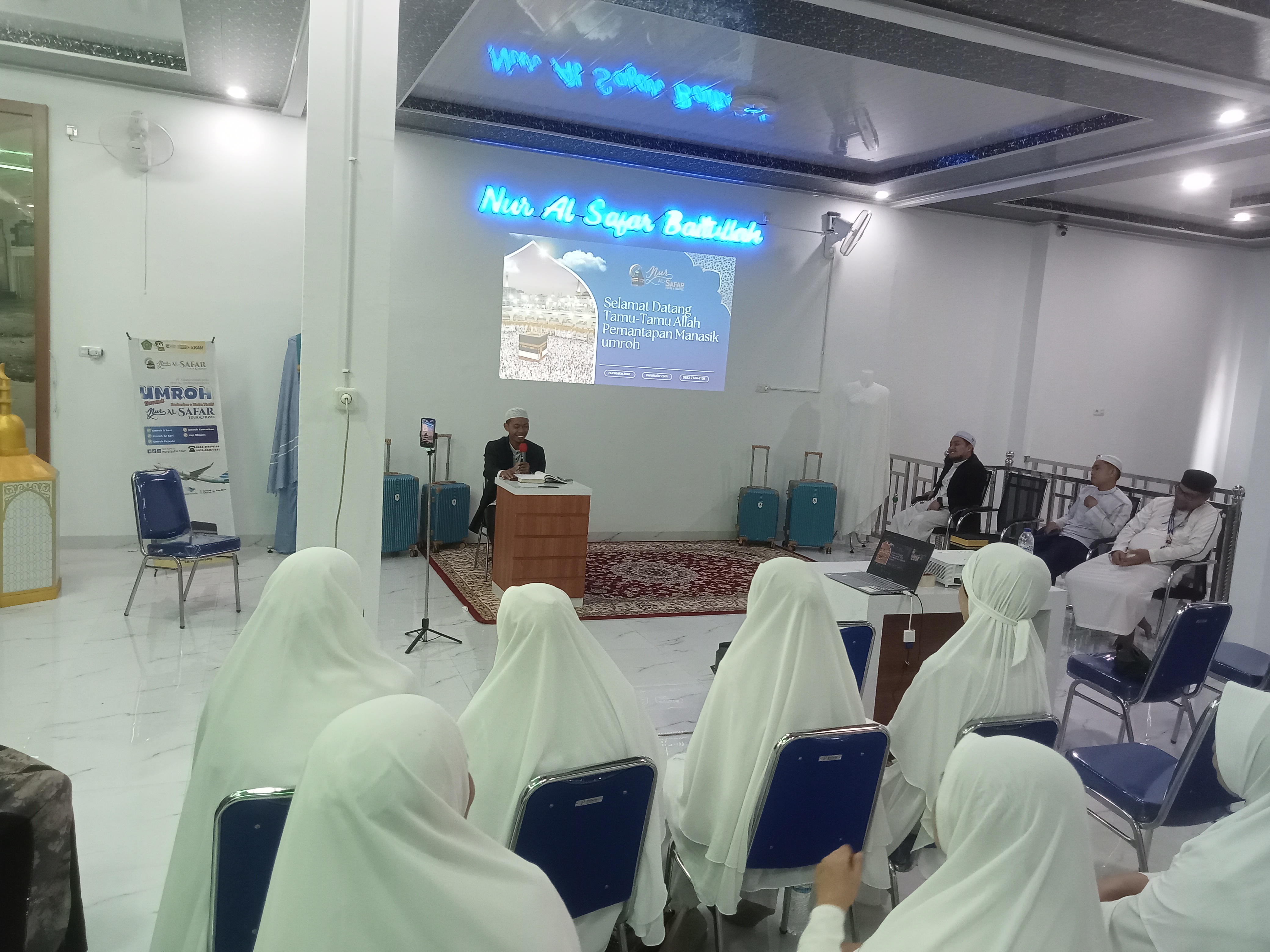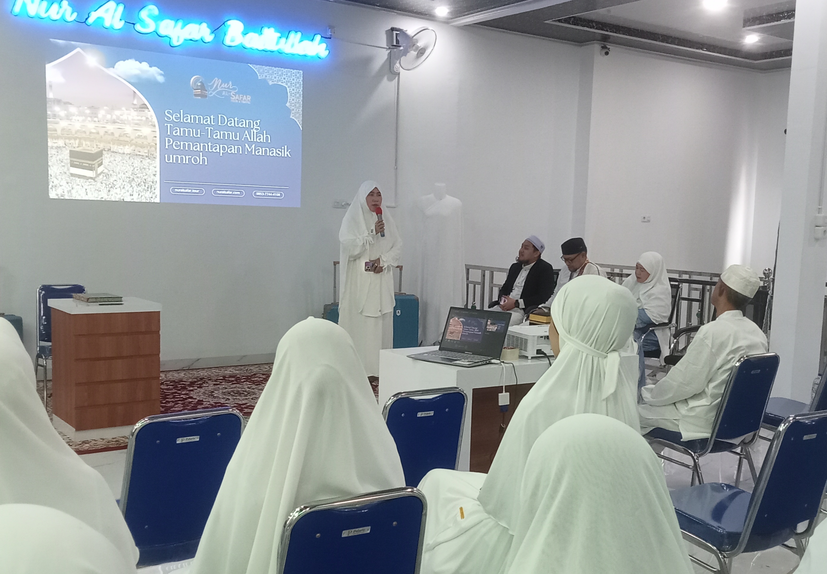 "Terimakasih atas kepercayaan bapak ibu telah memilih Travel Nur Al-Safar untuk membersamai bapak ibu dalam melaksanakan ibadah umroh," terangnya di hadapan para Jamaah.