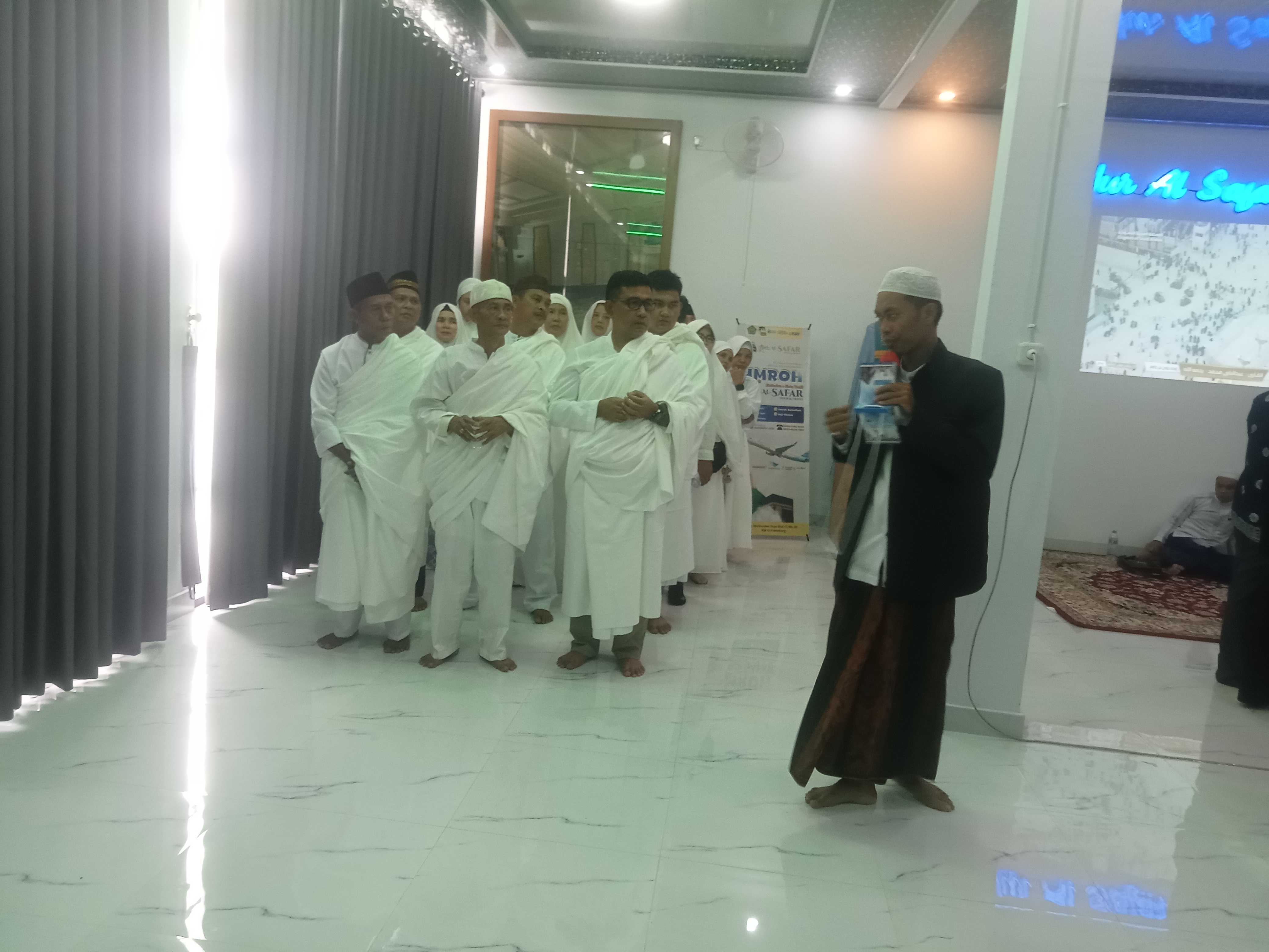 PALEMBANG, GLOBALPLANET - Puluhan Calon Jamaah umroh Nur Al-Safar yang akan berangkat ke tanah suci pada tanggal 12 Desember 2025 dan 13 Januari 2026 Mengikuti Manasik umroh di Gedung putih milik Nur Al-Safar di Griya Hero Abadi, Kelurahan Talang Kelapa, Kecamatan Alang-Alang Lebar Kota Palembang, Minggu (16/11).